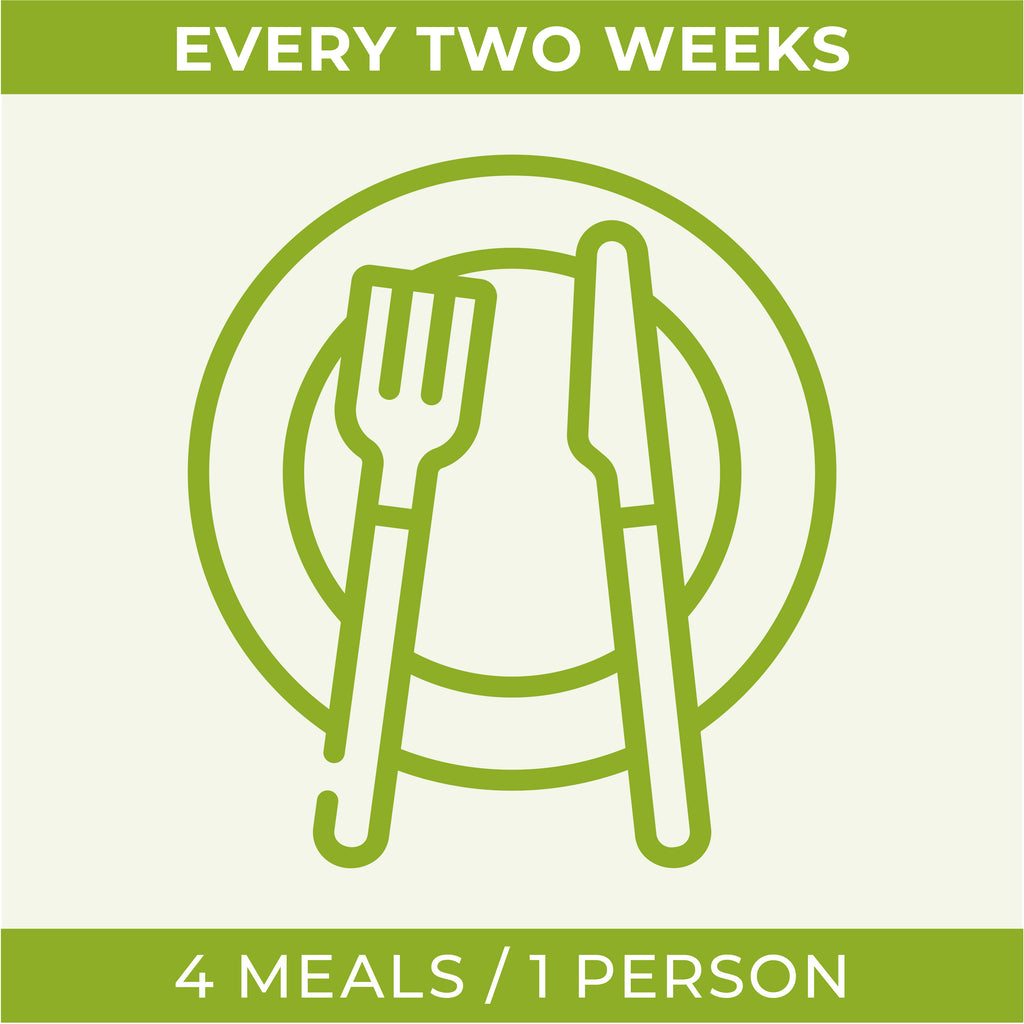 For a biweekly subscription, you will receive your order every two weeks. An individual plan typically feeds one person for four meals (varies per person). After completing payment, watch your email for your welcome email. You will fill out a menu survey to make your selections for the week. As a biweekly subscriber, you will receive an email every other Tuesday for a delivery reminder and additional details. The no-contact delivery will be Wednesday.