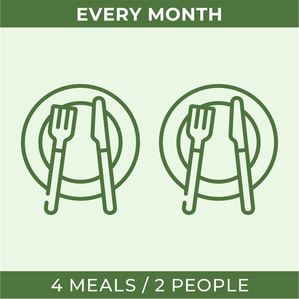 For a monthly subscription, you will receive your order once a month. A couples plus plan typically feeds two people for four meals (varies per person). After completing payment, watch your email for your welcome email. You will fill out a menu survey to make your selections. You will receive a Tuesday email preceding delivery on Wednesday as a delivery reminder with additional details. The no-contact delivery will be Wednesday.