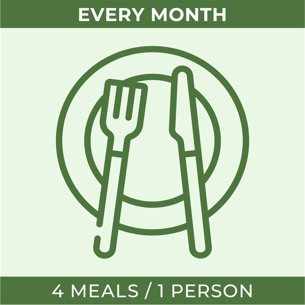 For a monthly subscription, you will receive your order once a month. An individual plan typically feeds one person for four meals (varies per person). After completing payment, watch your email for your welcome email. You will fill out a menu survey to make your selections. You will receive a Tuesday email preceding delivery on Wednesday as a delivery reminder with additional details. The no-contact delivery will be Wednesday.